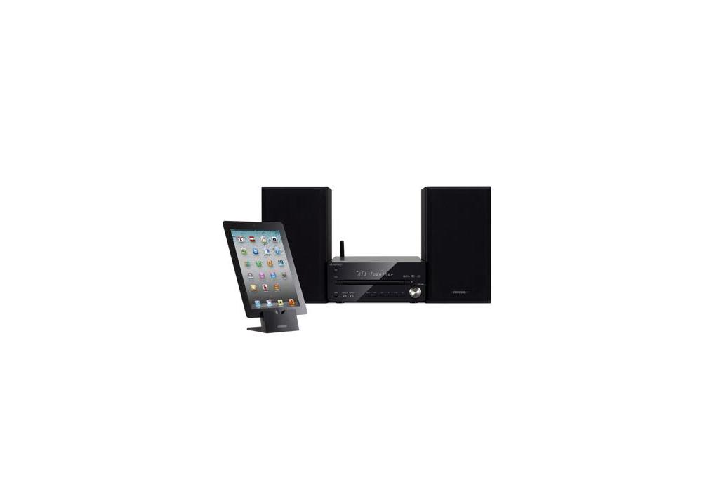 Here's a sound solution that brings a new level of convenience to your music listening. This compact component system features AirPlay and Wi-Fi compatibility. So, there's no need to dock your iPod/iPhone, allowing you to control the music you want from across your room. If you wish, there's a direct dock for your iPod/iPhone, and a USB port conveniently located on the front panel for direct playback from USB devices and iPad digital playback. A powerful 50W x 2 amplifier and full response 2-way speakers produce remarkable sound.